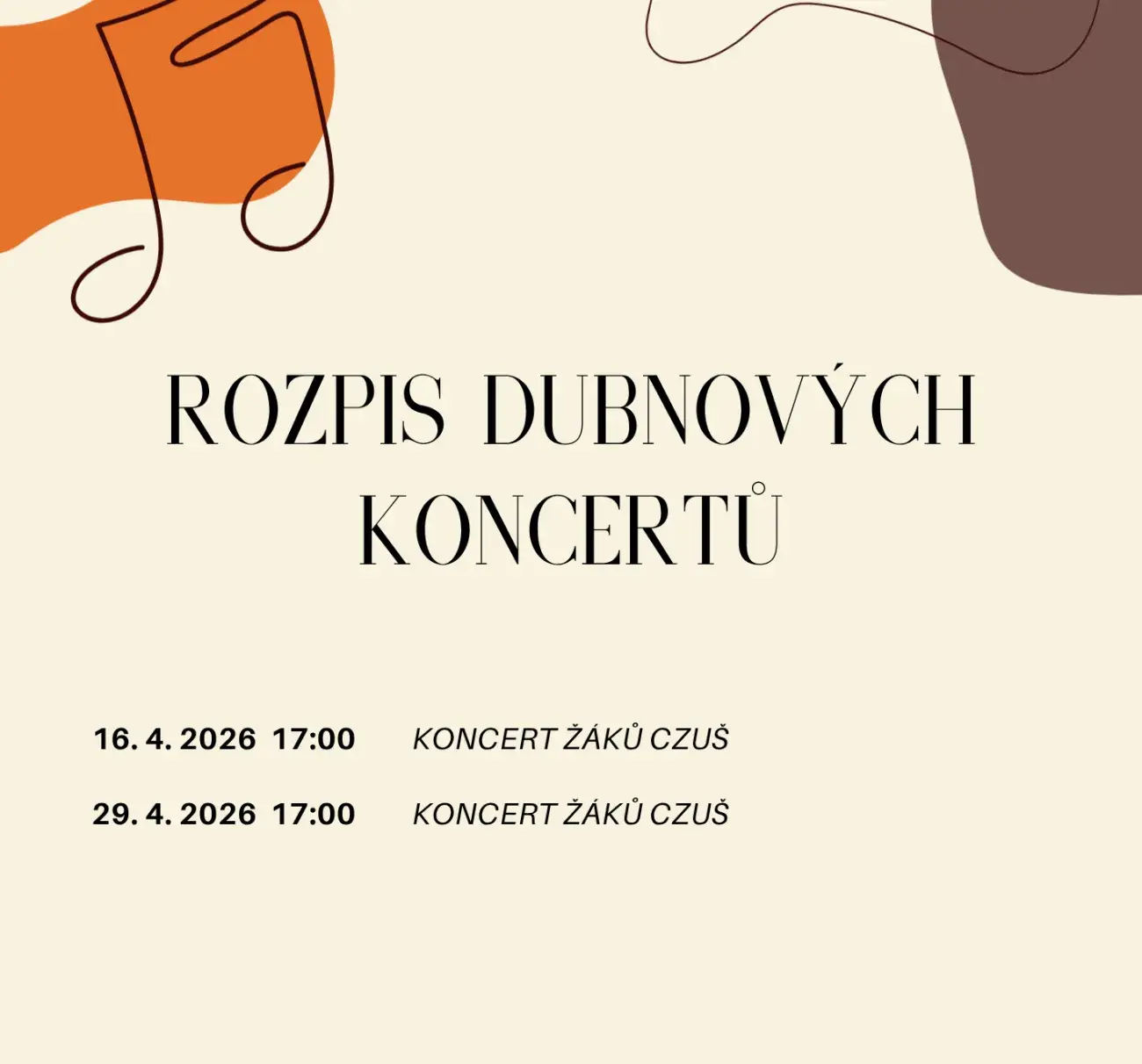 Srdečně vás zveme na dva dubnové koncerty, které se uskuteční jako obvykle v aule Biskupského gymnázia.