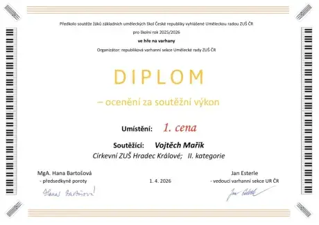 Vojta Mařík se v předkole umístil ve zlatém pásmu a postoupil tak do ústředního kola, které se bude konat 24. dubna.